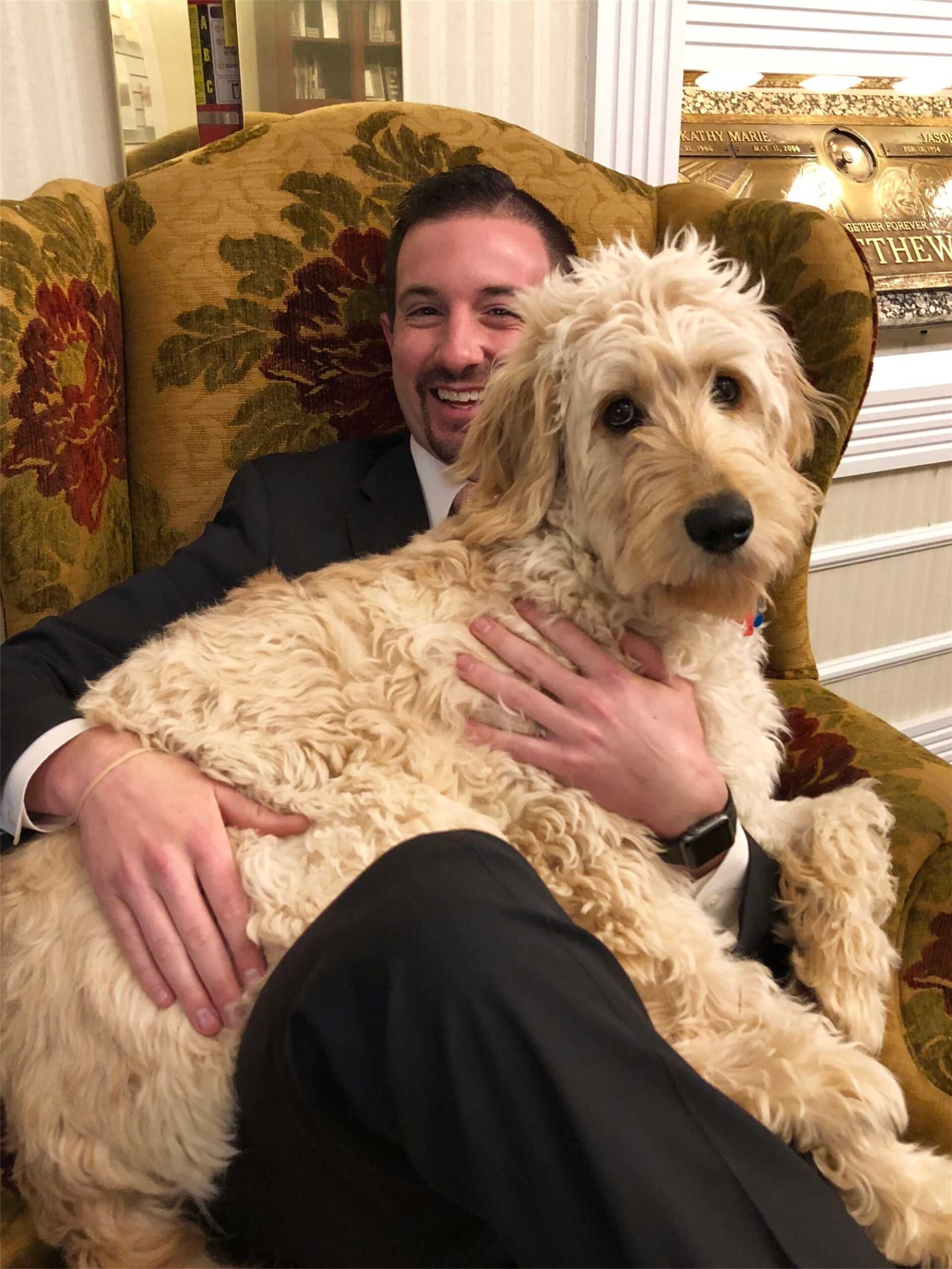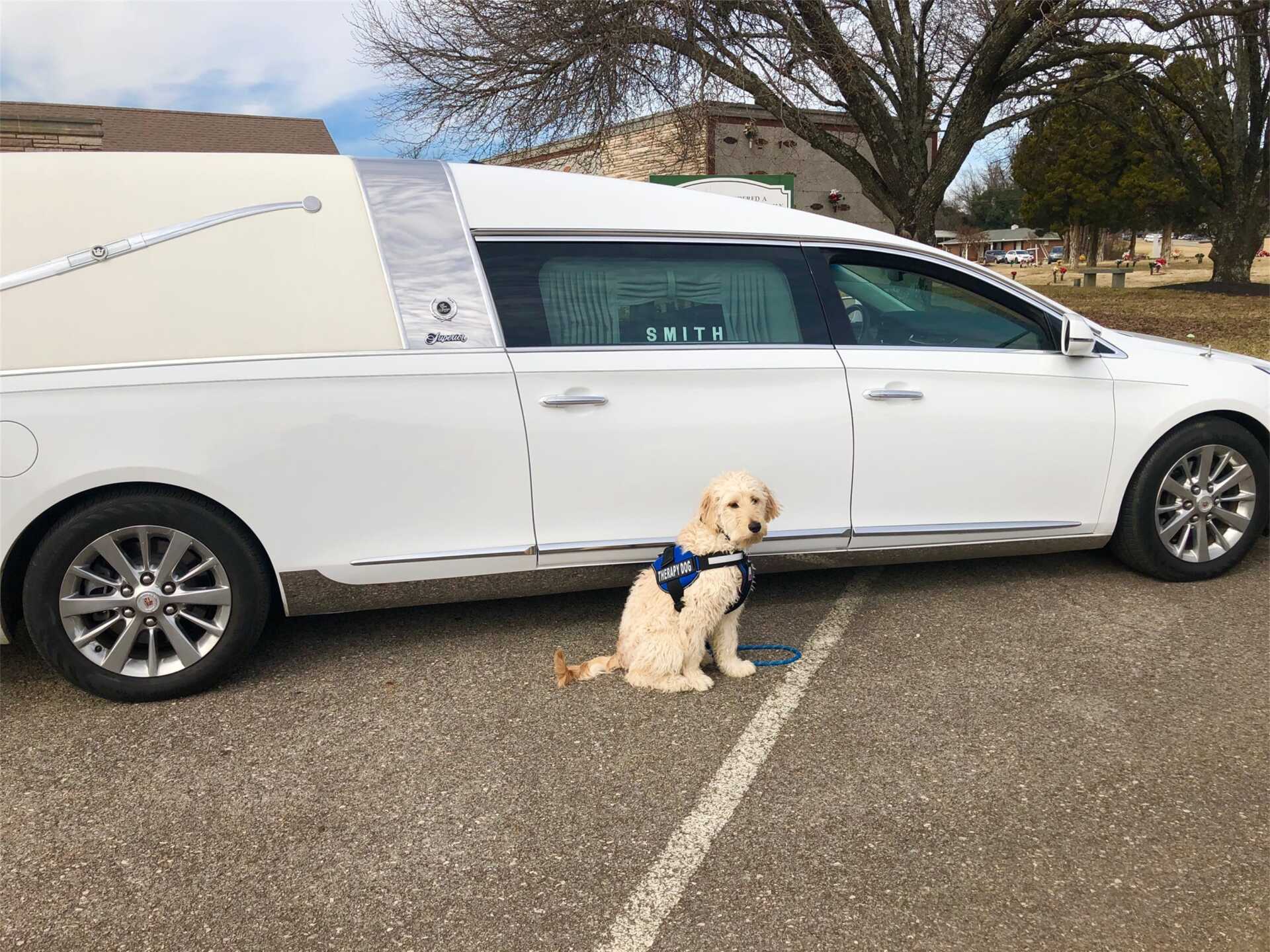 Hello! My name is Tuck and I am a grief therapy dog. I am a Goldendoodle. I have completed my AKC Canine Good Citizen program and a lot of extensive training at Off Lease K-9 Training with Shannon Thurston. After I turned one year old, I was able to go out into the community to meet people as a certified grief therapy dog! I will also be around the funeral home. Please stop by and pick up one of my very own coloring books and watch my Instagram (@Tuck in training) for updates on where I will be and upcoming events I'll be attending! Thanks for joining me in this process and I look forward to meeting you!